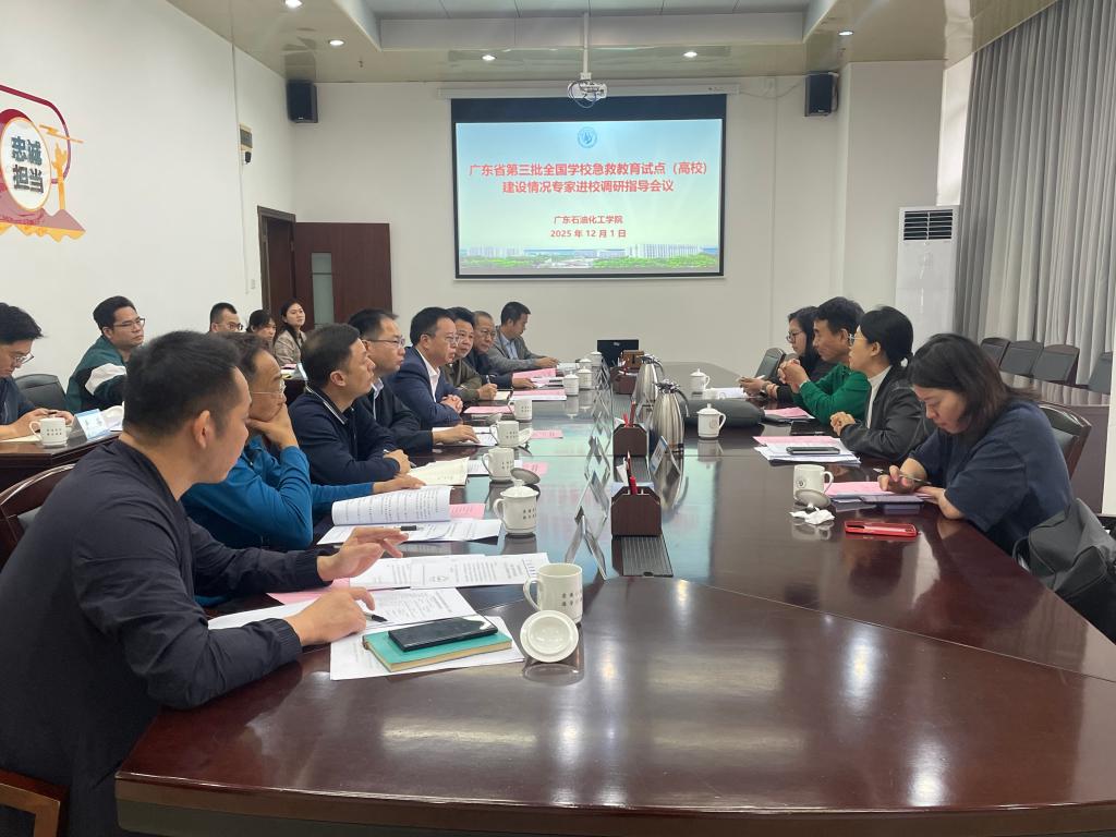 2025年12月1日,广东省第三批全国学校急救教育试点(高校)调研专家组走进我校,实地调研指导学校急救教育试点建设工作,学校党委副书记李为民主持调研会议,相关职能部门负责人参加调研。