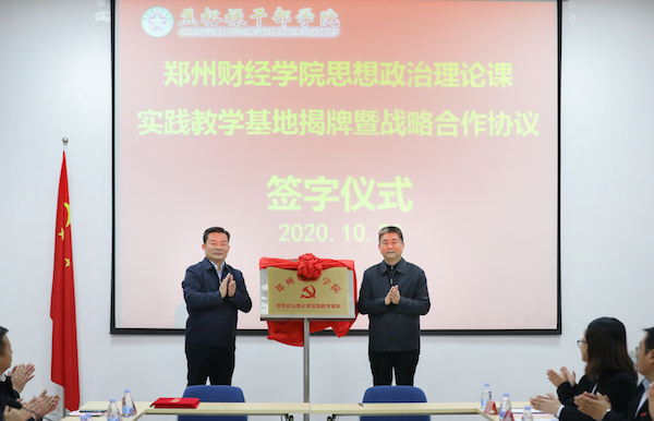 焦裕禄干部学院党委副书记、常务副院长席建设和开云kaiyun官方网站党委书记李国强共同为“开云kaiyun官方网站思想政治理论课实践教学基地”揭牌。