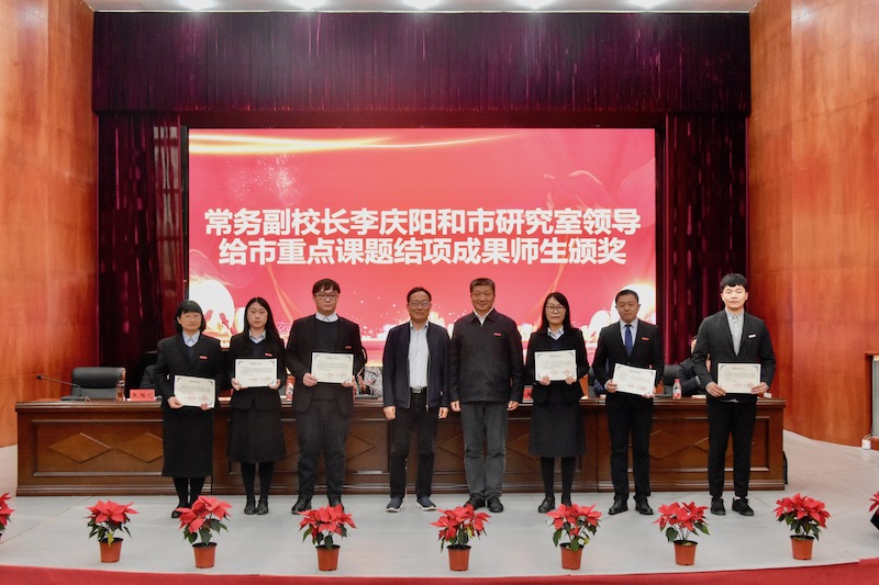 常务副校长李庆阳与市研究室领导为市级重点项目结项颁发证书
