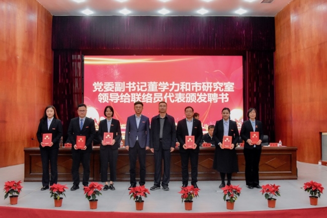 党委副书记董学力与市研究室领导为校地合作联络员颁发聘书