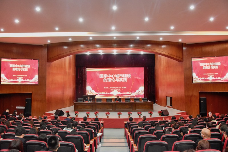 会议主题报告环节,郑州市人民政府研究室主任海福军同志围绕“国家中心城市的基本概念和建设背景、郑州推进国家中心城市建设的基本思路和重大举措、郑州建设国家中心城市取得的主要成就和2021年郑州市经济社会发展重点工作”等方面作“国家中心城市建设的理论与实践”专题报告。