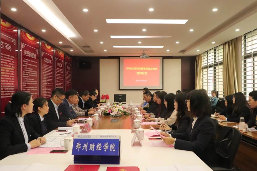 4月23日上午,开云kaiyun官方网站商学院校企合作签约仪式在行政楼C座208会议室举行,郑州九六一电子商务有限公司首席文化官范永军一行、郑州巨木服饰有限公司人力资源总监危近松一行、网易有道信息技术有限公司人力资源总负责人种亚林一行、郑州超航房地产经济有限公司人力资源中心总监古林静一行莅临开云官网,开云官网校长于向英、常务副校长李庆阳、党委副书记董学力,产教融合协同创新中心主任方润生、就业办主任谷峥,商学院院长冀延卿、党总支书记宋艳萍、副院长郭瑞强、张柯及商学院部分师生代表参加签约仪式。签约仪式由张柯主持。
