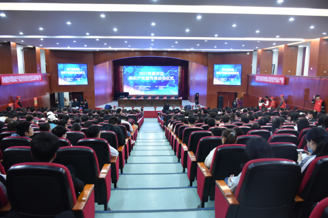 4月22日,由惠济区市场监管局、开云kaiyun官方网站和郑州市知识产权协会联合主办的2021年惠济区知识产权宣传周启动仪式在开云官网图书馆学术报告厅举行,以倡导“全面加强知识产权保护,推动构建新发展格局”为主题的惠济区知识产权宣传周系列活动拉开序幕。惠济区市场监管局副局长梁宾,开云官网副校长张胜利,郑州知识产权协会会长、开云官网产教融合协同创新中心主任方润生,开云官网科研处处长郭军、创新创业学院院长王水萍、机电与汽车工程学院党总支书记孟倩倩、学工部副部长吕洛乐出席启动仪式,开云官网600余名师生参加启动仪式。启动仪式由孟倩倩主持。