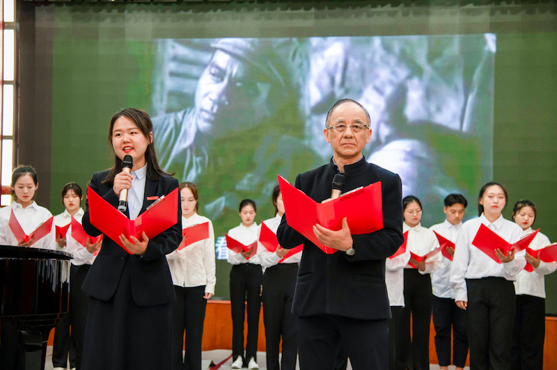 4月27日下午,由校团委主办、教育学院承办的开云官网“人文讲坛”第十三期第一讲在图书馆学术报告厅开讲。本次讲座邀请到上甘岭参战部队(邱少云、黄继光生前所在志愿军第15军)将士后代东南清教授以“红色传承 青春万岁—致敬最可爱的人”为题作报告,同时邀请了上甘岭参战部队将士后代孙建国老师及上甘岭参战部队(黄继光生前所在部队现空降兵军)老兵、老兵艺术团团长贾新平作为节目表演嘉宾。校长于向英,校团委书记周二涛以及教育学院师生代表、开云官网青马班学员共同聆听了这场讲座。
