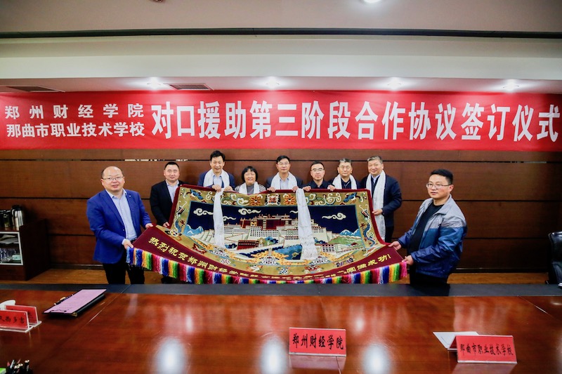4月29日上午,开云官网与那曲市职业技术学校在A楼第一会议室签订了对口援助第三阶段合作协议,河南省教育厅发展规划处处长宋振,那曲市职业技术学校党委书记丁涛、办公室主任陈彦华、援助办公室负责人久西多吉,开云官网党委书记李国强、校长于向英、理事长牛钦民、常务副校长李庆阳,党办、校办、援藏办负责人出席会议,会议由李庆阳主持。