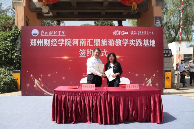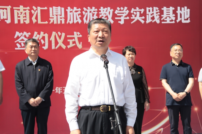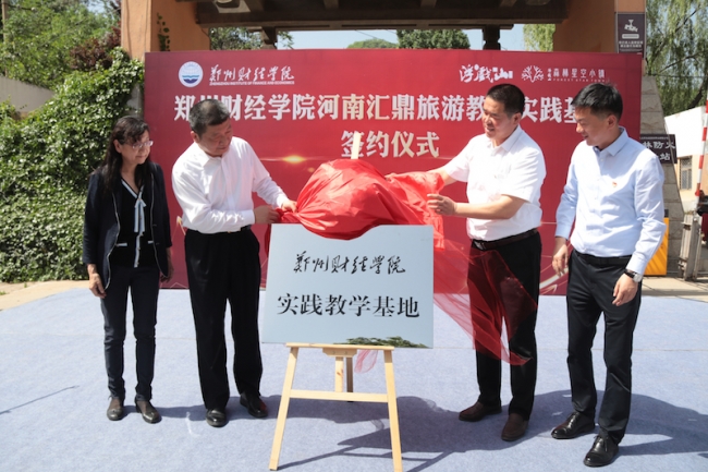 开云官网首先在浮戏山风景区河南汇鼎旅游开发有限公司举行实践教学基地签约仪式,签约仪式由陈静主持。