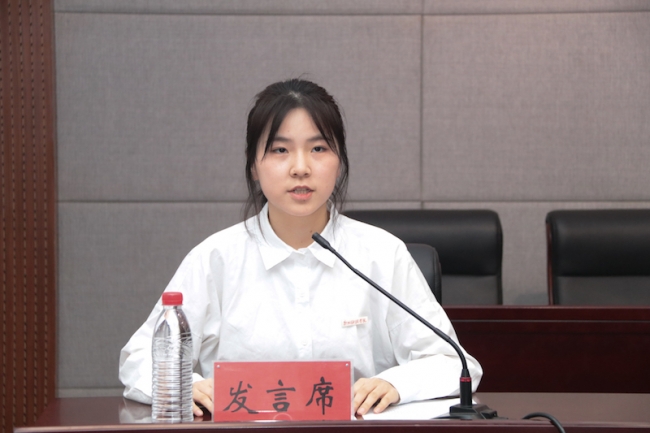 校学生会主席团成员朱哲睿发言
