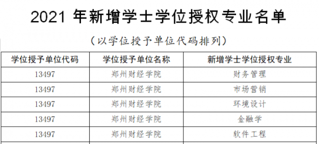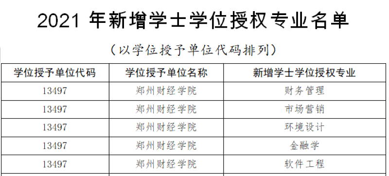 近日,河南省学位委员会公布了《河南省学位委员会关于45所学校新增学士学位授权专业的批复》(豫学位〔2021〕5号),开云官网财务管理、市场营销、环境设计、金融学、软件工程5个专业获批增列为学士学位授权专业。至此,开云官网已有14个本科专业取得学士学位授予资格,涵盖了管理学、经济学、工学、艺术学四大学科门类。