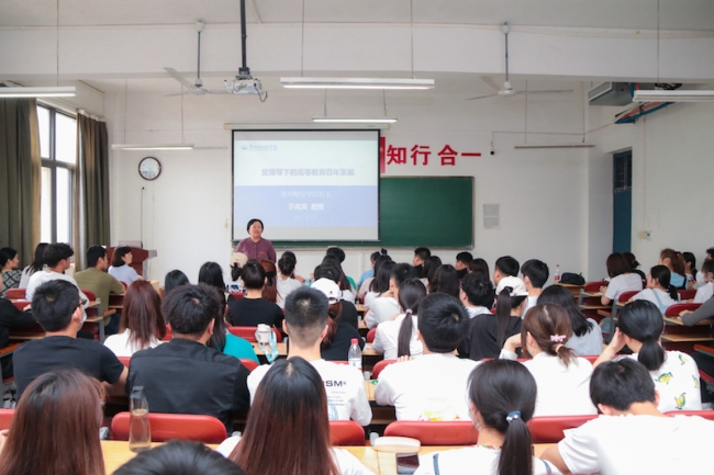 校长于向英为商学院学生党员、入党积极分子代表讲党课