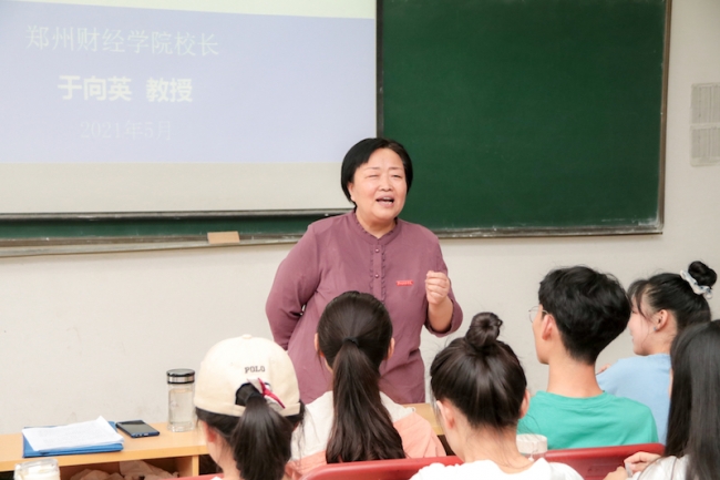 于向英向同学们阐释了党领导下高等教育发展的不同历史阶段,结合自身的教育经历及学校发展史,激励大家要坚定理想信念,勇于担当作为;立志报国,树立家国情怀;立志为学,发奋成长成才;坚守初心,锤炼高尚品格。并以习近平总书记“30里借书,30里讨书”的故事勉励同学们把学习作为首要任务,要像海绵汲水一样汲取知识,抓住点滴学习时间。