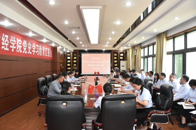党委书记李国强作学校党史学习教育开展情况汇报。他表示,自党史学习教育开展以来,学校围绕落实中央、省委以及省委高校工委的决策部署和安排要求,立足实际,精心部署,坚持突出重点、推进方法创新,高标准部署、高质量推动党史学习教育各项工作,全校党员干部及师生把党史学习教育作为干事创业的“必修课”,在党史学习中坚定信仰信念,淬炼党性修养,强化实干担当。