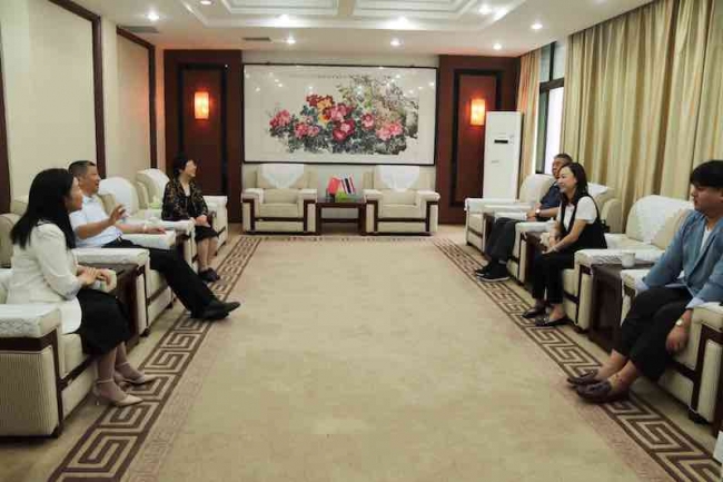 会谈中,王珊珊首先转达了博仁大学副校长Pattanant Petchchedchoo对理事长牛钦民及学校领导的问候,对开云官网第一期教师博士班在泰国的学习给予了高度评价,对去年在疫情期间给博仁大学捐赠防疫物资表示衷心感谢。李庆阳对王珊珊一行的回访表示热烈的欢迎,并转达了理事长和学校领导的问候,对两校间的友好合作给予了充分肯定。接着双方就博士培养、专业方向拓展、共建中泰师资库、共办国际学术研讨会、“一带一路”国际访学交流等内容进行了深入探讨,并达成了共识。