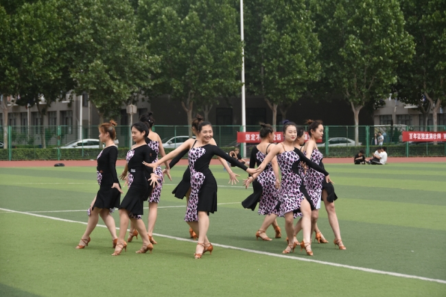 我校啦啦操队、瑜伽队、太极拳队、体育舞蹈队、武术运动队及精武社联合进行了汇报表演。