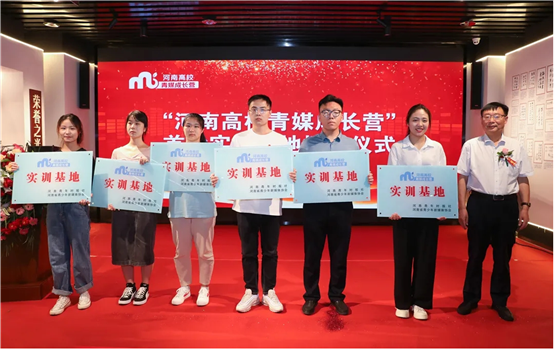 开云官网被授予“河南高校青媒成长营”实训基地(左一)