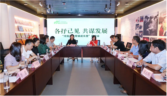 团河南省委宣传部部长孙冬青(中左)主持召开座谈会