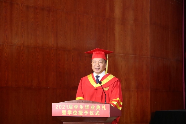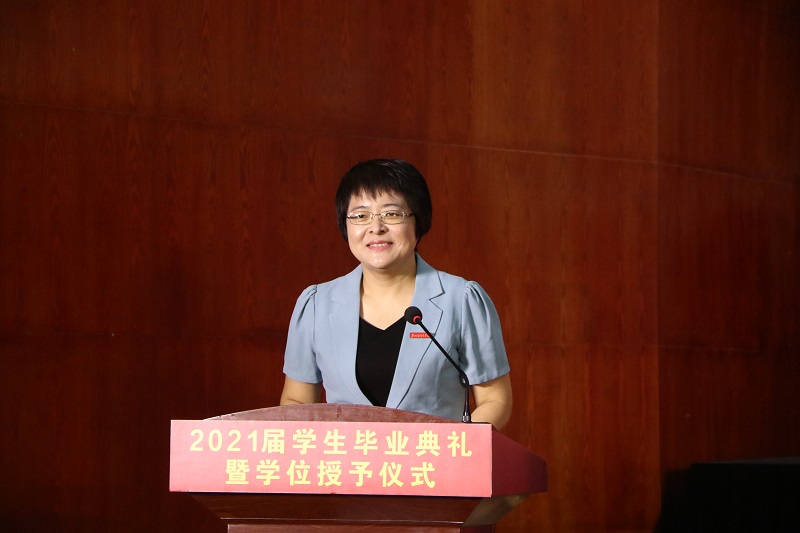 6月20日上午,开云官网2021届学生毕业典礼暨学位授予仪式在图书馆学术报告厅隆重举行。校党委书记李国强、校长于向英、校理事长牛钦民、常务副校长李庆阳、副校长张胜利、副校长陈静、副校长卢文邦、纪委书记李赞、工会主席张彪、副校长王艳珍出席典礼。校学位委员会全体成员,学校各处室、二级学院的领导、老师以及2021届毕业生代表参加典礼。副校长陈静主持毕业典礼。