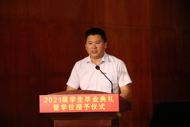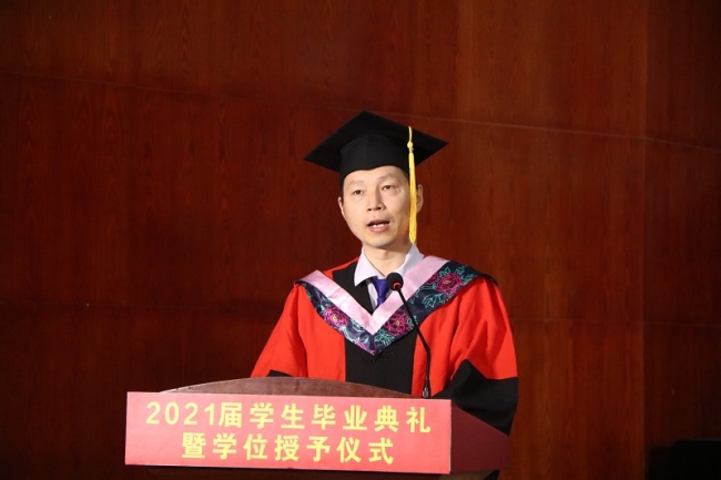 常务副校长李庆阳宣读《开云kaiyun官方网站关于授予鲍海波等3564名同学学士学位的决定》,并向他们表示祝贺。