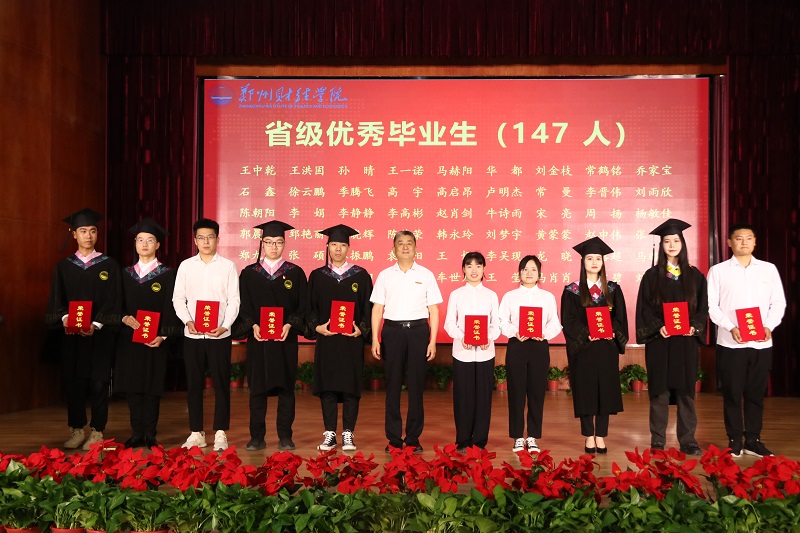 在颁奖环节中,副校长张胜利为优秀考研学生颁奖;理事长牛钦民为校级优秀毕业生代表颁发荣誉证书;校党委书记李国强为省级优秀毕业生代表颁发荣誉证书。并向他们表示热烈的祝贺。