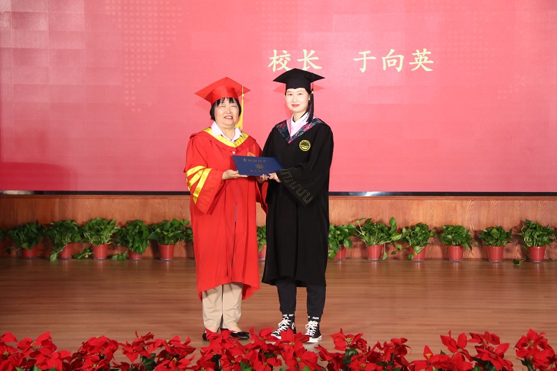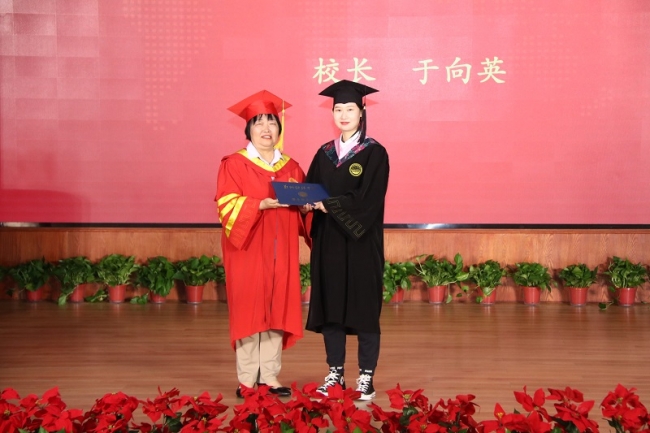 校长于向英为毕业生代表颁发学位证书