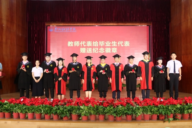 教师代表向毕业生代表赠送纪念徽章