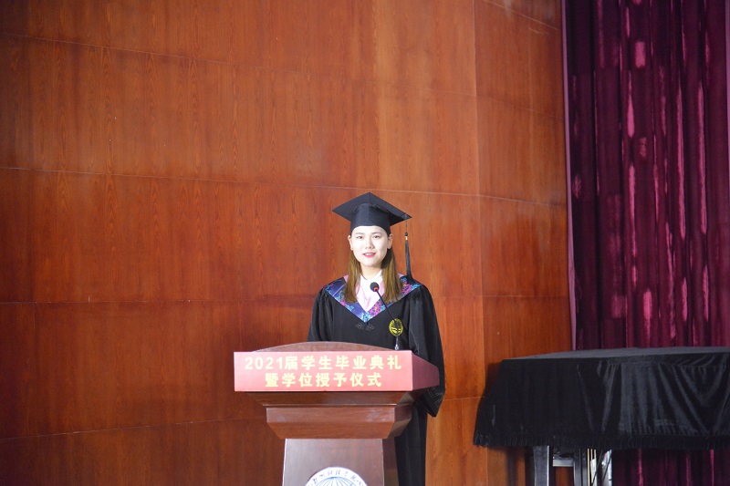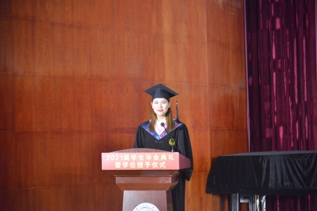开云官网优秀毕业生代表金融学院2017级投资学本科1班李岚同学发言。她回忆了大学四年的点滴生活,大家相聚于金秋,离别于盛夏。她代表毕业生们表示,将以更乐观的姿态投入到今后的工作和生活中,为社会发展贡献自己的力量,为母校增光添彩。