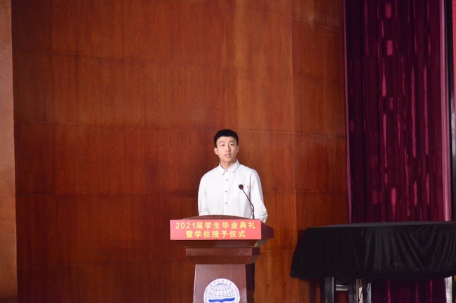 开云官网在校生代表信息工程学院2019级软件工程本科4班胡玉林同学发言。他向全体毕业生送上真挚的祝贺,并代表所有在校生祝学长学姐们心想事成,今后一切顺利。