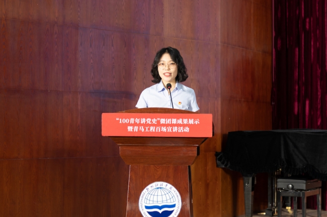 本次“100青年讲党史”专题微团课大赛活动,遴选出一系列优秀微团课作品。土木工程学院张金菊获得一等奖;商学院韩真真、土木工程学院杨玲珂获得二等奖;土木工程学院王培传、会计学院余锐、贾成旭获得三等奖;土木工程学院杨超毅、管理学院金凯、金融学院毋晓荣、赵东鸽获得优秀奖。
