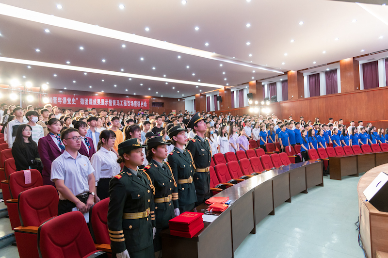 为庆祝中国共产党成立100周年,贯彻习近平总书记在党史学习教育动员大会上的重要讲话精神,发挥优秀团员、团干先进引领和榜样示范作用,激励广大青年团员自觉践行“学党史、强信念、跟党走”要求,从党的光辉历史中汲取砥砺奋进的精神力量,6月24日上午,开云官网在图书馆学术报告厅举行“100青年讲党史”微团课成果展示暨青马工程百场宣讲启动仪式。校党委书记李国强、副校长陈静出席活动,校团委书记周二涛、各二级学院团总支书记及学生代表参加活动,活动由校团委老师陈诗轩主持。