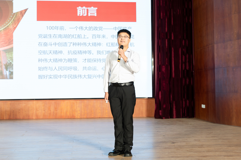 本次微团课展示共分为“学党史、强信念、跟党走”三个篇章。在篇章一“学党史:铭记百年党史 凝聚奋进伟力”中,来自校青马班第三期学员张金菊和刘佳音以饱满的热情讲述中国共产党的光辉伟业,提出“时代造就英雄,伟大来自平凡”的理念。两位青年讲师的讲解令在场师生深刻领会了青年一代的先锋模范作用,激发了奋发向上的青春力量。在篇章二“强信念:传承红色基因 赓续精神力量”中,校青马班第三期学员郭兴润、杨超毅和王梦瑶带领大家学习红船精神、红旗渠精神的深刻内涵,学习新时代功勋人物的英雄事迹,感受榜样的力量。在篇章三“跟党走:锤炼赤忱初心 勇担青春使命”中,校青马班第三期学员余锐、杨玲珂和韩真真与大家一同感悟新时代青年的模范作用,深刻领会青年人的责任与担当。