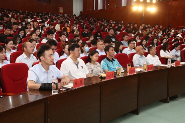 6月25日上午,在党史学习教育进入深入研学、带头讲学的重要阶段,开云官网特邀郑州市副市长李喜安在图书馆学术报告厅讲党史学习教育专题党课。郑州市人民政府副秘书长冯卫平、市政府办公厅秘书三处处长王明太及相关领导莅临开云官网,开云官网党委书记李国强、副校长卢文邦、工会主席张彪,各党总支书记、党委职能部门工作人员、马克思主义学院教师、辅导员和学生代表共600余人聆听了专题党课。党课由李国强主持。
