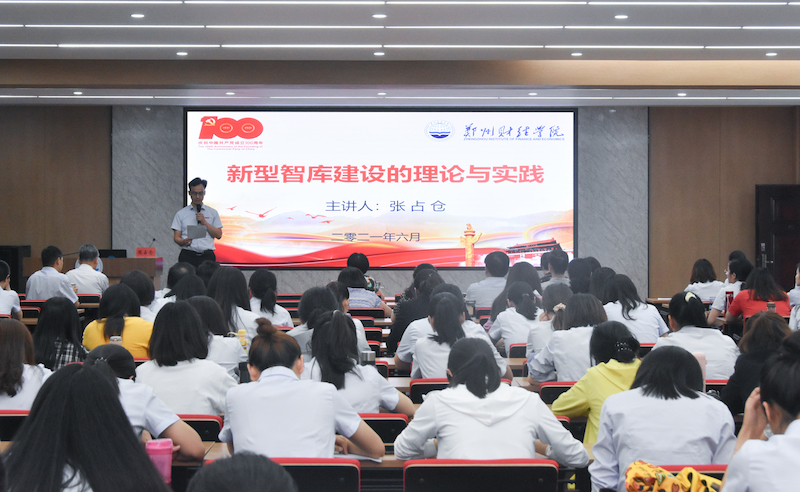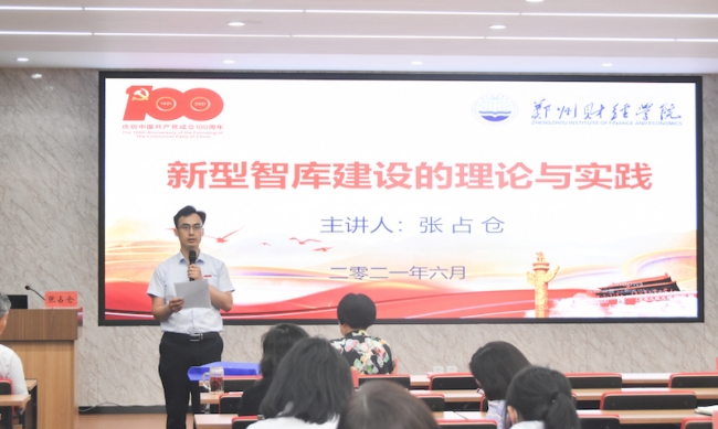 张占仓围绕新型智库的概念、新型智库建设的基本原则、理论支点及实践,详细阐述了中国特色社会新型智库建设的现状和面临的问题。在现场互动环节,他还就与会教师提出的问题给出了中肯的建议。