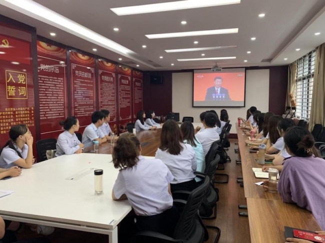 外国语学院19级英语本2班祝依婷说,作为今年新发展的党员,我是幸运的,也是自信的,有那么多前辈同志的引领,有那多先进事迹和崇高品德的激励,我会更加努力,不断锤炼党性,端正自己的学习和工作态度,瞄准目标,坚持学习,不断进取,做到脚踏实地,做无愧于党、无愧于人民的共产党员。