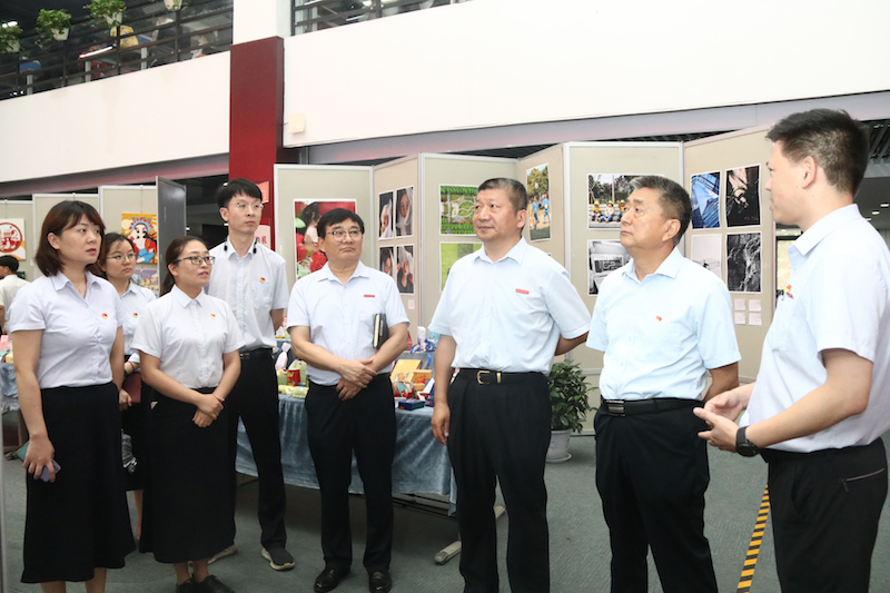 6月29日上午,校党委书记李国强、校长于向英、常务副校长李庆阳、党委副书记董学力、副校长陈静、副校长王艳珍及各职能部门负责人在艺术设计学院院长任留柱和党总支书记靳会贤的陪同下共同参观了美术设计作品展。