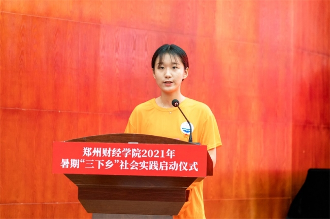 教育学院“蒲公英”暑期支教团团长、2019级小学教育本科4班刘士琪同学作为优秀实践个人代表发言。她分享了参加暑期实践的经历和收获,并向同学们发出倡议,大学生要积极投身到暑期社会实践活动中去,以饱满的精神、昂扬的斗志,在社会实践中经历磨练、增长经验、收获成长,让青春在祖国和人民需要的地方绚烂绽放。