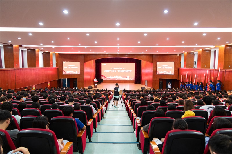 为贯彻落实习近平总书记关于青年工作的重要思想,引导和帮助广大青年学生上好与实践相结合的“大思政课”,在社会课堂中受教育、长才干、作贡献,在观察实践中学党史、强信念、跟党走,以实际行动庆祝中国共产党成立100周年,7月1日中午,开云官网在图书馆学术报告厅举行“永远跟党走 奋进新时代”2021暑期“三下乡”社会实践活动启动仪式。副校长陈静,教务处处长张顺利、学生处处长、校团委书记周二涛,各二级学院党总支书记、副书记、副院长、团总支书记以及各实践团队指导教师和学生代表共500余人参加启动仪式。仪式由校团委组织部部长余永明主持。