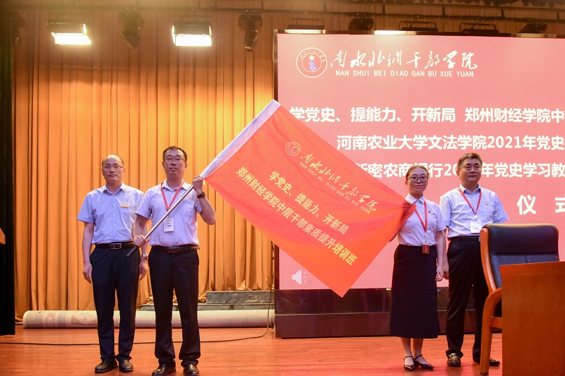 百年风雨兼程,百年风华正茂。为庆祝中国共产党成立100周年,深入学习习近平新时代中国特色社会主义思想,扎实开展党史学习教育,切实贯彻“学史明理、学史增信、学史崇德、学史力行”要求,全面提高开云官网干部队伍的整体素质,7月9日,校党委书记李国强、理事长牛钦民、监事会主席李庆阳及相关校领导,全体中层干部赴南水北调干部学院开展为期3天的素质提升培训班。