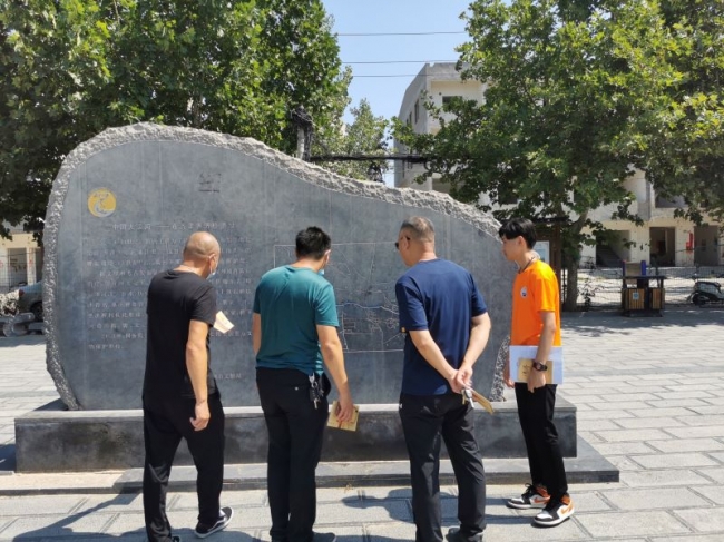 “管理青年”黄河文化暑期宣讲团成员为游客讲解石碑上的历史