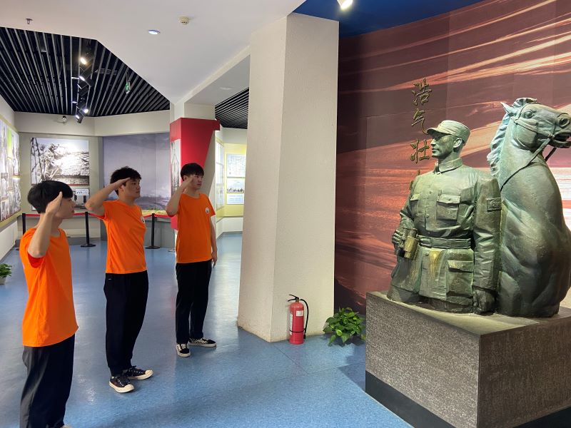 “红色印记”暑期寻访实践团成员向彭雪枫将军雕像敬礼