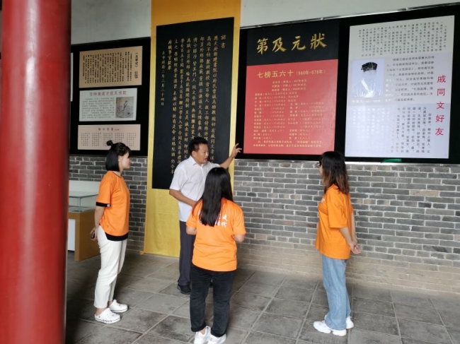 “小外说河南”地方传统文化教育调研团成员在应天书院采访中国范仲淹研究会理事孙纲先生