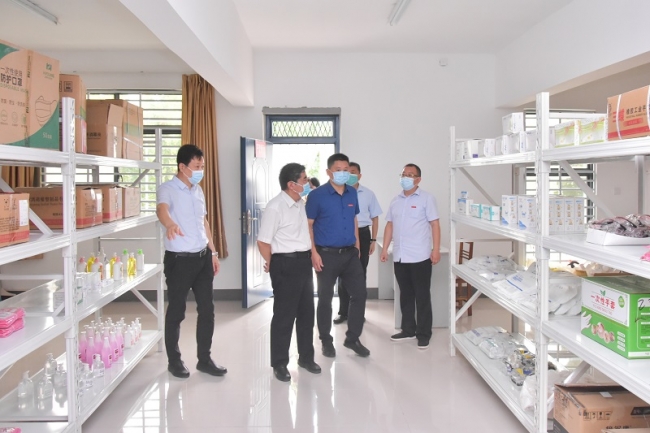 陈垠亭一行实地查看防疫物资储备情况