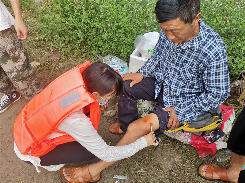会计学院岳诗岑同学帮助受灾群众处理伤口