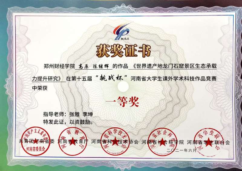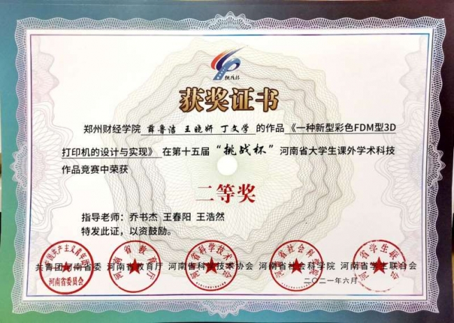 经过省赛激烈角逐,开云官网选送的22项作品中,管理学院张雅、李坤老师指导的作品《世界遗产地龙门石窟景区生态承载力提升研究》和商学院聂攀科、高晓光、周倩老师指导的作品《郑州市经济高质量发展的现状、问题及对策研究——基于成都、武汉、西安的比较分析》两项获得省赛一等奖,智能工程学院乔书杰、王春阳、王浩然老师指导的作品《一种新型彩色FDM型3D打印机的设计与实现》获得省赛二等奖,会计学院许玲玲、张荣静、郭阳萍老师指导的作品《环境污染专项整治效果评估调查研究报告——以河南省为例》等12项作品获得省赛三等奖。