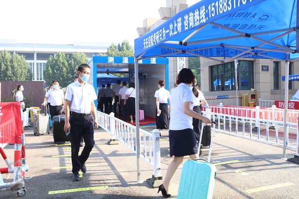 学生报到期间,要严格按照返校批次入校,原则上不在当日报到范围内的学生,当日不予准入。除师生员工外,一切校外人员包括学生家长禁止入校。入校学生需按照学院、专业间隔一米有序排队入校。学生入校前接受健康码、行程码、48 小时内核酸检测阴性证明检查,并带好口罩,依次通过测温通道,体温正常者方可入校。体温异常者须至分诊台二次测温,带至留观区进行医学观察,医务人员询问病史,联系定点医院并告知学生家长,学校派人送学生就医,相关人员做好防护。辅导员做好患病学生追踪管理,疫情报告人及时上报辖区疾控中心和区属疫情防控领导小组教育专班。