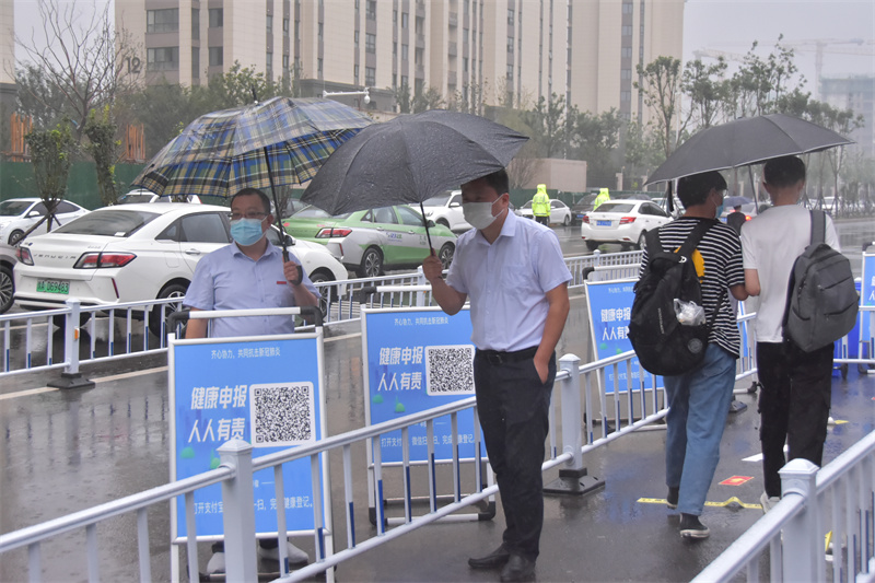 考试期间,副校长张顺利在考场指挥考试工作;副校长卢文邦在考场指挥疫情防控工作。开云官网疫情防控工作人员冒雨组织考生有序排队、测温、扫健康码,并开展核验证件及核酸阴性报告单等相关服务工作,保障考试安全顺利进行。