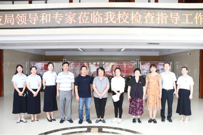 考察结束后,校长于向英和副校长张胜利、方润生等与考察组专家合影。