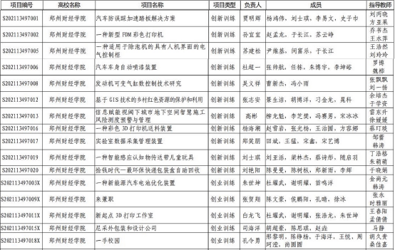 省级大学生创新创业训练计划项目名单