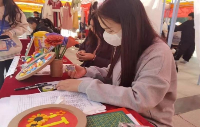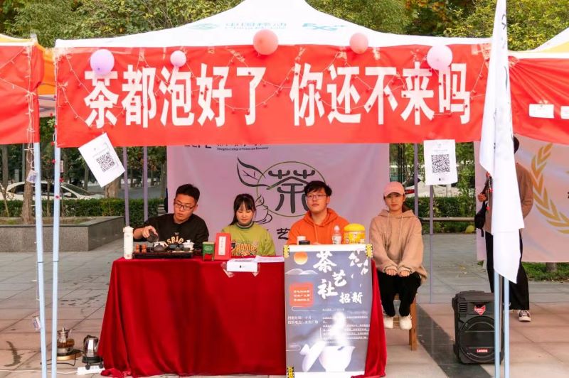 在为期四天的社团文化艺术节中,各社团充分结合自身特点,齐展才艺,大力招新,宣传条幅新颖俏皮,摊位游戏有趣吸睛。动漫社的Cosplay、汉服社的汉服展示、瑜伽社的柔美瑜伽、书画协会的书法展示以及投壶、跳房子、幸运大转盘、集社团印章换奖品等小游戏吸引同学们驻足观看,活动现场气氛热烈,报名者络绎不绝,文化广场洋溢着朝气蓬勃的青春活力。