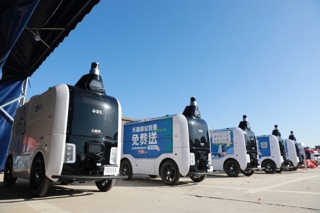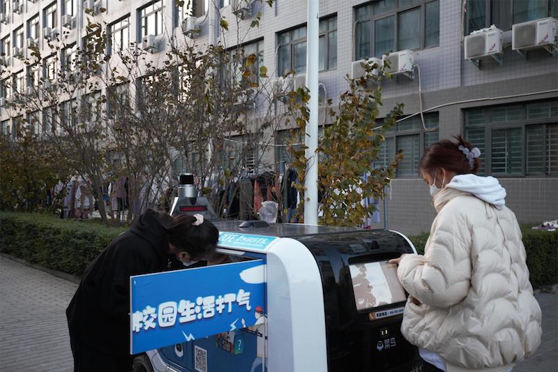 时尚的造型、一路温馨的语音提示,让无人派送车成为校园里一道独特的风景。