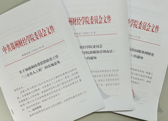 推出网络文化精品。不断创新网络文化产品的内容、形式和载体,培育申报高校网络文化建设精品项目,引导广大师生积极参与网络产品的创作生产。《以精品育人心——新媒体育人实践与探索》《校园网络网格化管理,助力思政教育精准化》获批省教育厅网络文化建设精品项目。纪录片《疫情无情人间有爱 与祖国同风雨》被省委高校工委、教育厅评为战“疫”优秀网络作品 ;微电影《恋砚—黄河情》、《人民教师 无尚光荣》在郑州市教育局举办的中国梦“微”力量微电影评选中获得一、二等奖。新闻作品《春晚郑州分会场上出彩的郑财人》荣获“2020年度河南省高校好新闻奖”新媒体类一等奖。官方新媒体创作推送的“党史学习教育”内容近百条,聚焦郑财人防汛救灾和支援抗疫的原创话题引起广泛热议。马克思主义学院发挥思政课堂主渠道作用,建设一批网络思政精品课程,录制《开学第一课》微课,举办思政微电影大赛,实现课上课下、网上网下相互补充。