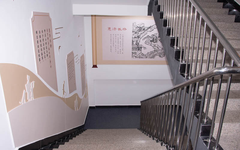 进入图书馆北侧楼道,“惠济古韵”文化墙映入眼帘。从一楼拾级而上,隋堤烟柳、黄河古渡、古城牧唱、岳山耸翠、广武晴岚、鸿沟暮云、惠济长桥、纪庙丰碑……一幅幅生动形象的绘画跃然墙上,历史沧桑感扑面而来。